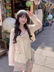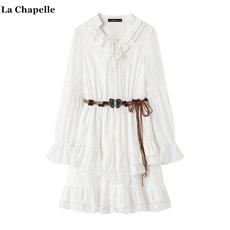 桔色花边长袖衬衫连衣裙子女秋季新款叠穿民族风流苏马甲开衫套装
