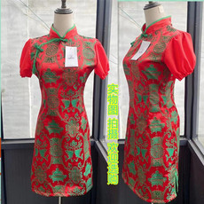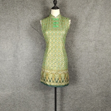 清仓处理民族风改良修身气质显瘦女泰国烫金布短款旗袍瘦人连衣裙