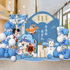 敖丙哪吒十周岁气球装饰生日派对布置儿童宝宝抓周礼背景墙kt板10