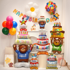 网红十周岁生日小熊气球场景布置装饰品儿童宝宝男女孩派对背景墙