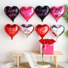 七夕情人节18寸玫红色爱心ILOVEYOU印字铝膜气球表白求婚场景布置