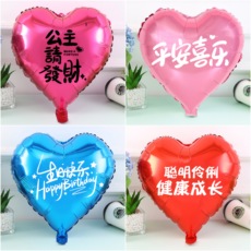 18寸铝膜爱心心形气球印字生日快乐派对装饰儿童宝宝周岁布置用品