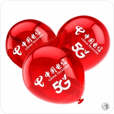 电信5G气球加厚圆形印字大红珠光多彩气球桌飘定制LOGO标志