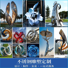 不锈钢雕塑定制镜面水景广场大型景观圆环浪花鹿户外廊架金属摆件