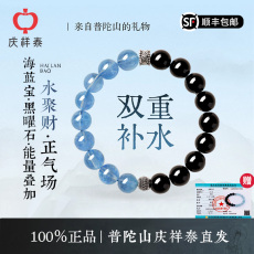 【普陀山官方】天然黑曜石海蓝宝水晶手串男士情侣手链女款礼物
