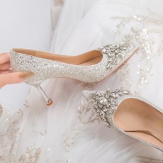 CDF女鞋轻奢秋季法式水钻秀禾公主新娘婚鞋细跟高跟鞋水晶鞋单鞋