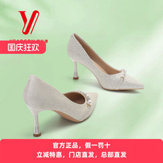 意尔康水晶鞋法式气质高跟鞋婚鞋纯色秀禾婚纱细跟尖头鞋浅口单鞋