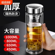 双层大容量玻璃杯隔热水杯茶杯车载便携喝水男透明家用加厚1000ml