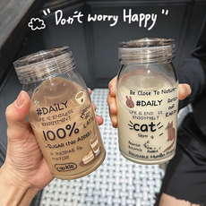 ins可爱猫咪透明玻璃杯加厚耐热水杯子韩式女学生情侣随手牛奶杯