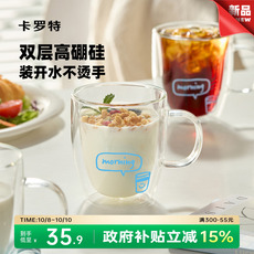 卡罗特双层玻璃杯牛奶杯家用耐高温加厚防烫水杯咖啡杯带把手杯子
