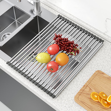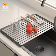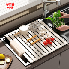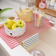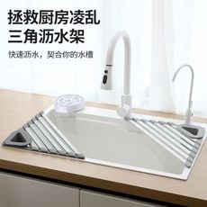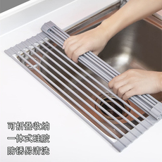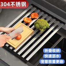 304不锈钢厨房沥水架可折叠碗槽沥水篮水槽置物架卷帘硅胶沥水垫
