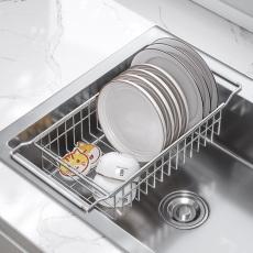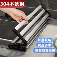 【适用于任何水槽】304不锈钢可折叠收纳沥水架硅胶沥水篮置物架