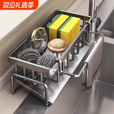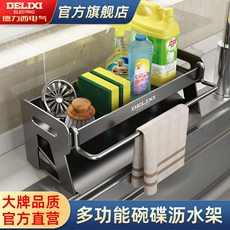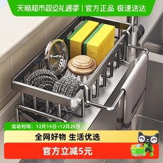 德力西不锈钢厨房置物架多功能沥水架海绵抹布架水龙头水槽收纳架