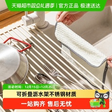 抹布沥水架厨房置物架免打孔水槽洗碗池毛巾海绵专用不锈钢收纳架