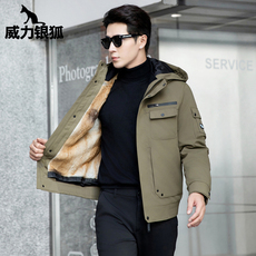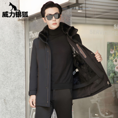 派克服男整貂进口皮草水貂内胆冬新款商务休闲连帽防寒鹅绒服大衣