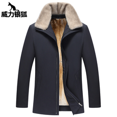 男士精品金光山羊皮银蓝整貂内胆可脱卸水貂毛领可脱卸