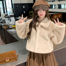 2025秋冬新款环保皮草圆领短款外套女年轻款仿皮毛一体水貂绒大衣