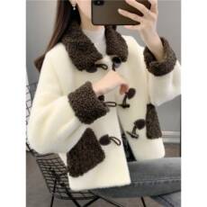 张婧仪同款 Kroche 环保水貂针织拼接短款保暖双拉头翻领外套