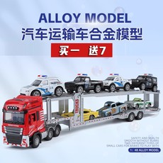 奇艺1:48双层汽车运输车合金轿运车模型合金小车玩具声光合金车模