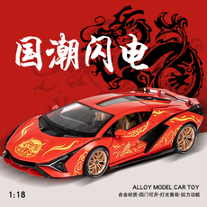 大号1:18国潮兰博基尼合金车模仿真闪电跑车模型声光回力汽车摆件