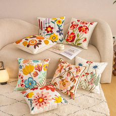 花卉刺绣抱枕套不含芯正方形网红北欧风纯棉靠垫床头客厅沙发抱枕