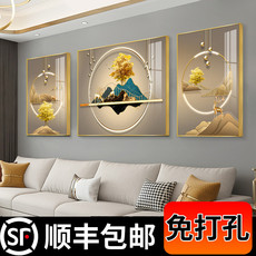 客厅免打孔装饰画现代简约沙发背景墙壁画餐厅卧室床头挂画三联