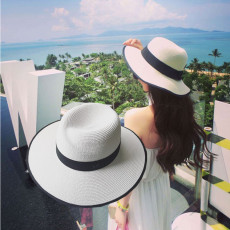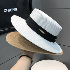 帽子女夏季遮阳沙滩帽防晒平沿太阳草帽子批发平顶英伦小清新礼帽