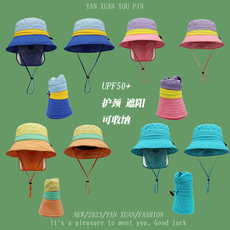 儿童帽子春夏季薄款大檐遮阳防晒披肩帽男女童出游沙滩宝宝渔夫帽