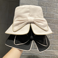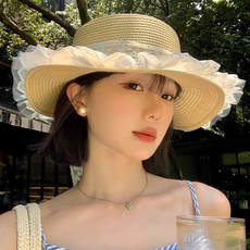 蕾丝蝴蝶结法式草帽女夏季海边沙滩度假大帽檐遮阳防晒帽太阳帽子