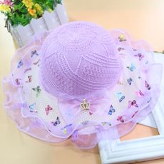 宝宝渔夫草帽夏季薄款女童透气镂空防晒盆帽公主沙滩遮阳宝宝帽子