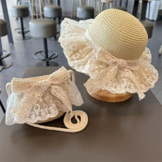 儿童草帽女童蕾丝防晒太阳帽夏季女孩遮阳帽子公主沙滩帽凉帽韩国