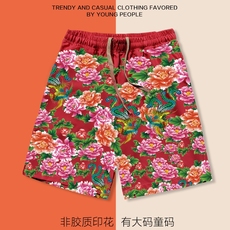 扎基拉姆女财神宽松休闲男女大码短裤沙滩裤直筒五分裤国风传统