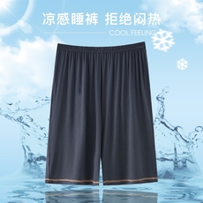 男士睡裤夏季薄款棉绸短裤大码人造棉沙滩裤居家宽松五分大裤衩子