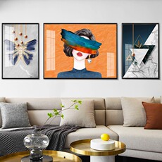 房间装饰画沙发背景画挂画客厅现代简约人物三联画晶瓷画现代风