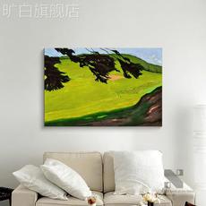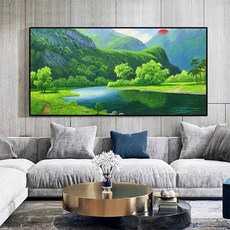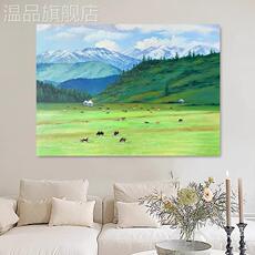 山水风景手绘油画客厅装饰画沙发背景墙青山绿水挂画壁画轻奢现代