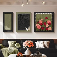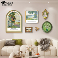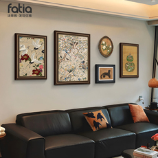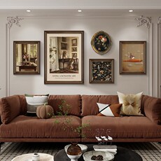 法式复古客厅装饰画沙发背景墙中古风挂画美式抽象斗柜组合壁画