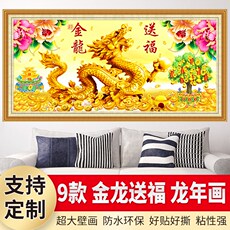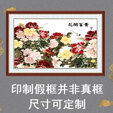 花开富贵壁画自粘油画布中式沙发背景墙房间客厅装饰画孔雀牡丹图