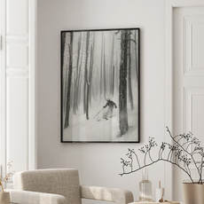 雪林滑行客厅森林卧室沙发自然运动滑雪装饰画挂画艺术框油画壁画