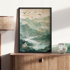 飞鸟山水客厅卧室沙发装饰画挂画艺术框油画壁画玄关鸟水彩自然