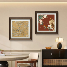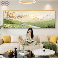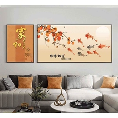 新中式晶瓷画家和万事兴柿柿如意年年有余两幅客厅沙发背景装饰画