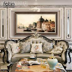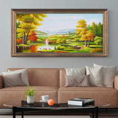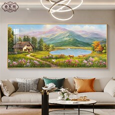 聚宝盆山水田园风景挂画欧式客厅装饰画沙发背景墙仿油画招财壁画