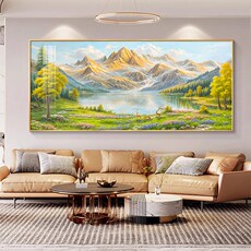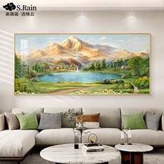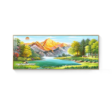 聚宝盆客厅装饰画横幅山水画风景油画沙发背景墙挂画日照金山壁画