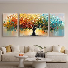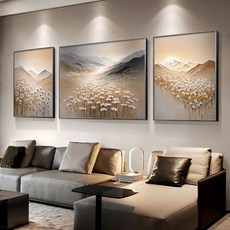 奶油风客厅装饰画北欧风景肌理油画沙发背景墙挂画高级感三联壁画