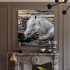 铝板画入户玄关客厅沙发背景墙壁装饰画挂画手绘现代简约骏马油画