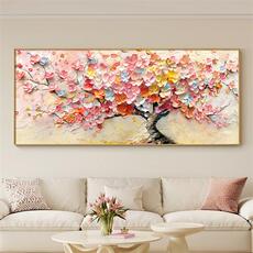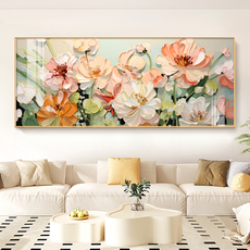 繁花似锦大芬油画村奶油风装饰画温馨花卉客厅沙发背景墙横版壁画