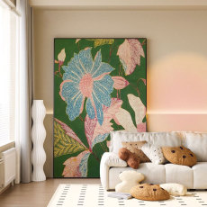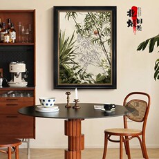 玄关中古风客厅植物手绘油画沙发背景墙挂画高级感餐厅中式装饰画