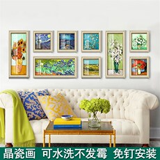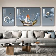 客厅装饰画现代简约沙发三联画北欧轻奢沙发背景墙壁画晶瓷挂画