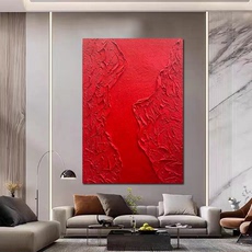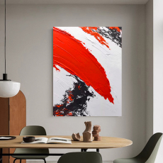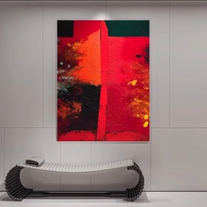 MHD原创手绘油画《光之律动》客厅沙发背景墙装饰画玄关红色挂画