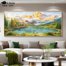 日照金山客厅装饰画m横幅山水风景油画沙发背景墙挂画2024新款壁