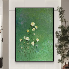 客厅大白墙装饰画大芬村油画抽象艺术花肌理高级感沙发背景墙挂画